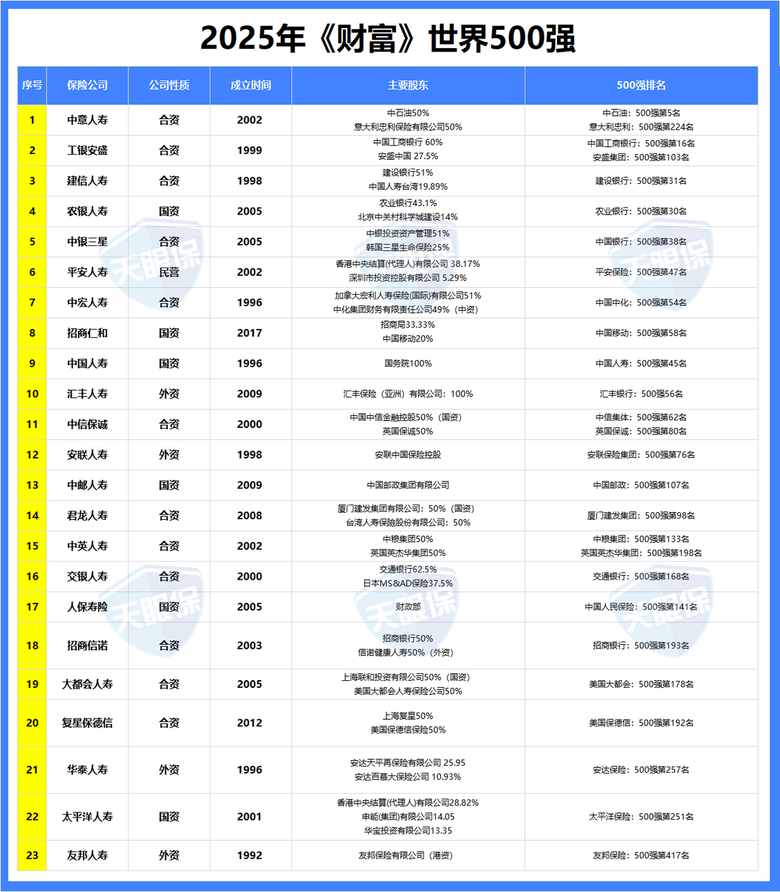 而最新的“世界 500 强”榜单中,中国内地的资产管理机构表现不俗,国内就有 23 家保险公司登榜,分别是: