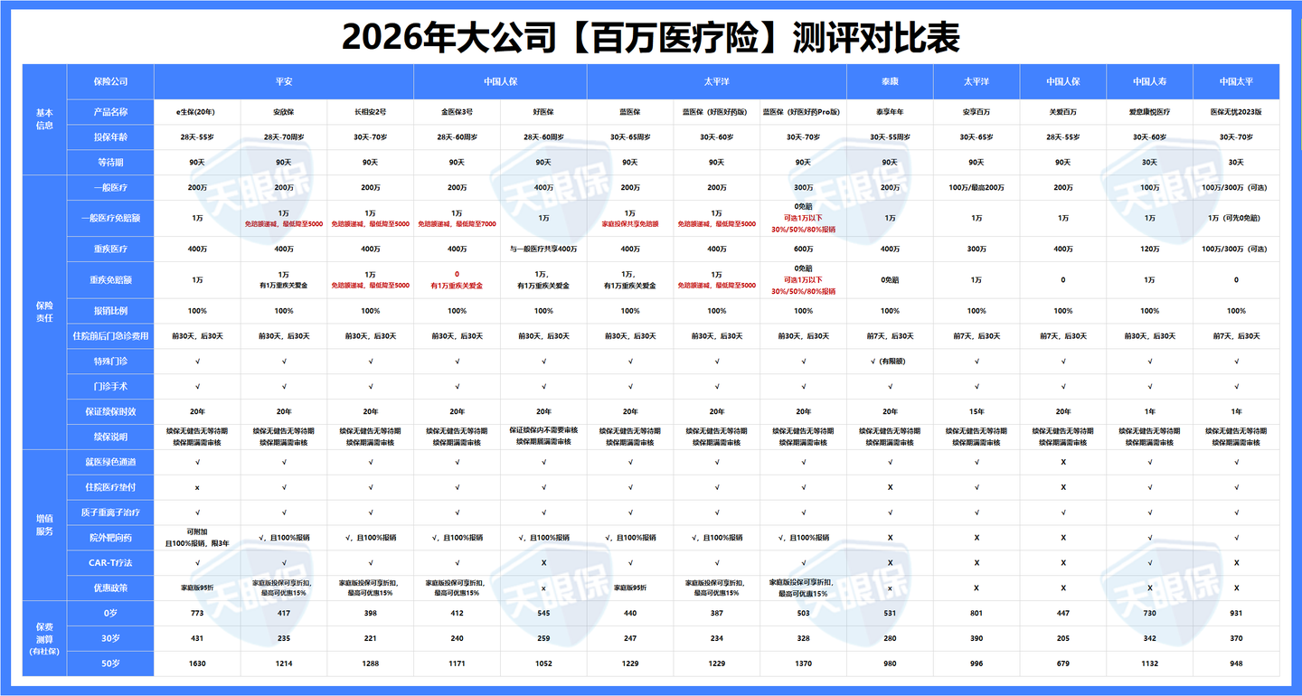掌握了以上四点,挑出性价比高的百万医疗险,就是非常轻松的了;三文也提前把2026年,最值得买的百万医疗险都整理好了,无论是大人、小孩、老人,都有最适配的产品;