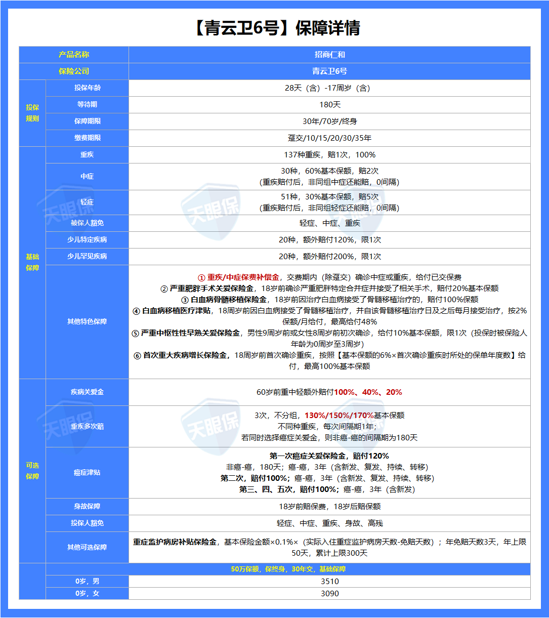 ② 保证续保6年:6年内无论理赔多少次、身体是否变化,都能续保;但6年后要重新审核。适合预算有限、想先过渡的人。