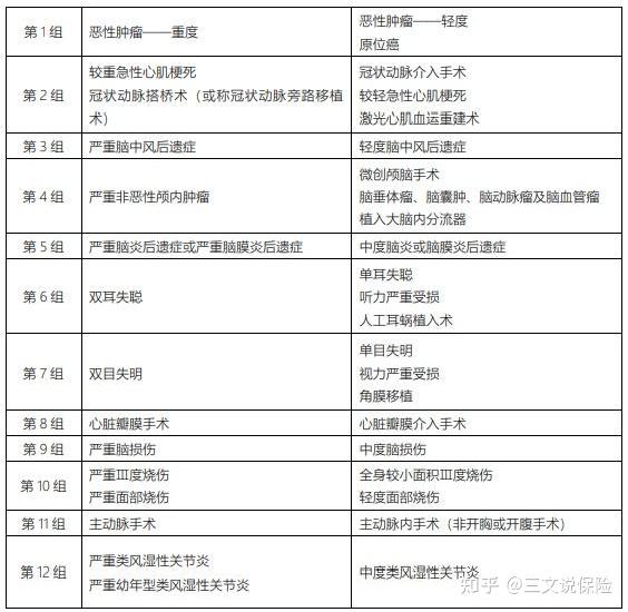 ② 进阶版:重疾赔完,只能再赔与首次重疾“非同组”的轻/中症。(比如首次重疾是癌症,后续的轻度癌症、原位癌就不赔了)