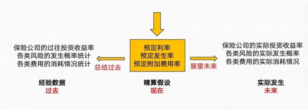 来自保险公司“保守定价”与“实际经营”之间的差额 。