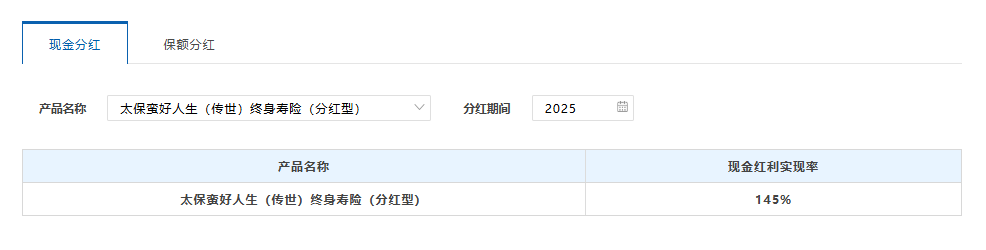 比如太平洋人寿的“蛮好人生(传世版)”,2025年公布的现金分红实现率高达145%,客户实际到手收益率约3.5%。