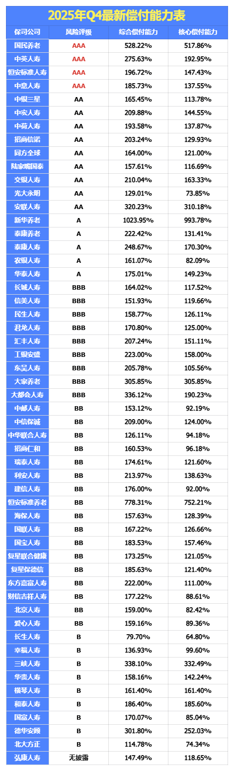 新华养老综合偿付能力高达 1023.95%,恒安标准养老也达到了 778.31%。