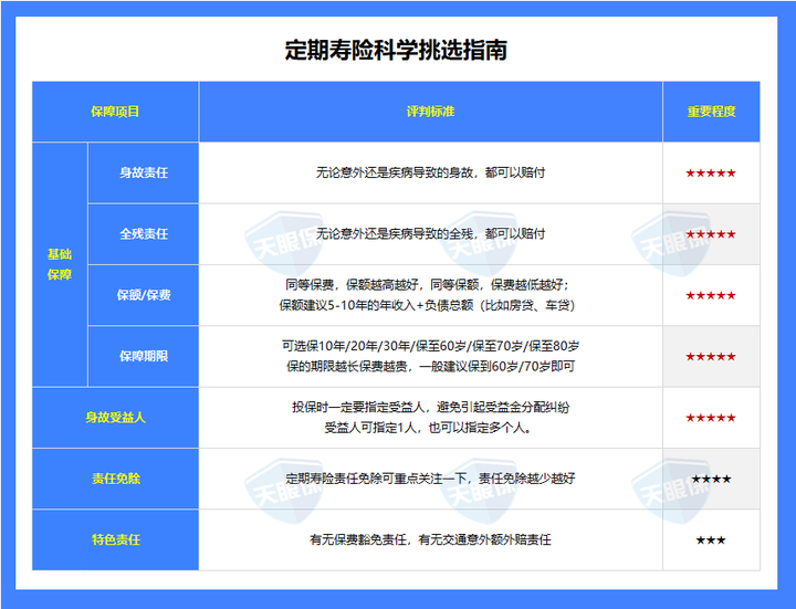下面这张图,是我为大家精心整理出来的定期寿险挑选指南:
