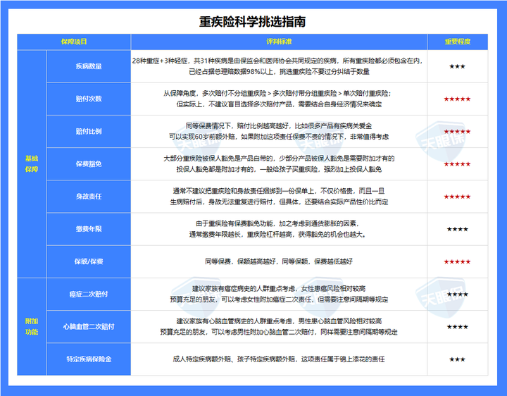 下面这张图,是我在对比了上百款重疾险之后,为大家精心整理出来的重疾险挑选指南: