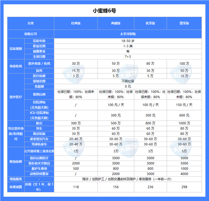 这里呢,我们测评对比了全网性价比天花板的成人意外险榜单: