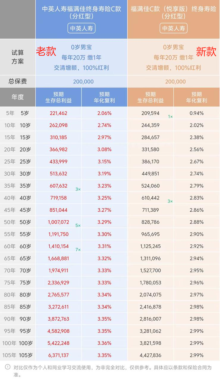 再看IRR,现在的福满佳C第20年就突破3.0%,最高能达到3.3%;