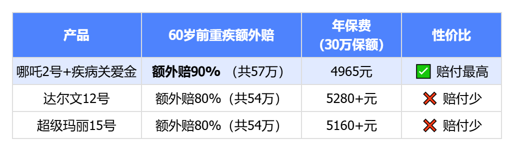 看中核保与性价比选哪吒2号;强化癌症/结节深度可选超级玛丽15号;重视多次赔付与意外叠加选达尔文12号。