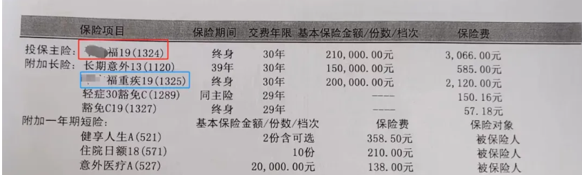 附加险(保重疾): 保额20万,每年交2120元。