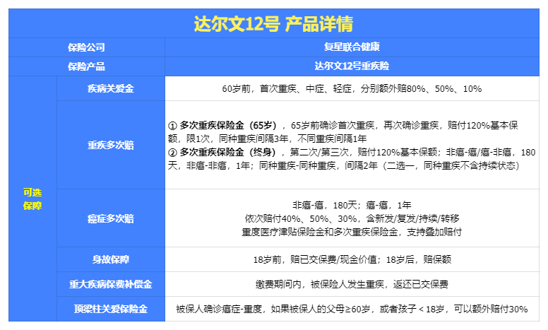 达尔文12号算不上完美产品,但它精准踩中了普通人买重疾险的核心需求,把「理赔宽松、责任实用、价格能打」这几点做到了极致。