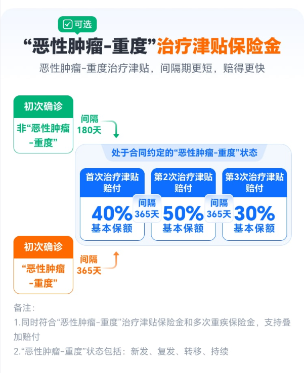 它是实打实的 “真多次赔付”,无论是同种重疾的复发、转移,还是不同种重疾的新发,都能覆盖,间隔期最短仅需 180 天;