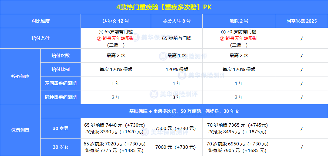 在成人重疾险的江湖里,永远不缺爆款选手。 达尔文12号把性价比卷到了极致; 完美人生 8 号凭借女性专属保障杀出重围; 哪吒 2 号以地板价保费横扫入门市场; 阿基米德 2025 则靠着大公司背景圈粉无数。 4款顶流产品同台竞技,到底哪款才是真能打?哪款最适合普通人闭眼入? 今天咱们就来一场实打实的深度对比,从保障到价格,看看到底哪款产品能更胜一筹,全程干货无套