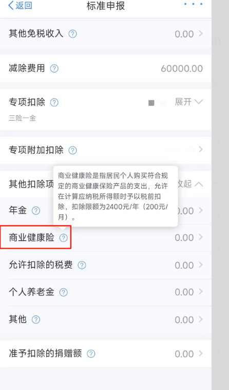 往下滑,找到「其他扣除项目」,点进去就能看到「商业健康险」这个选项,认准它;