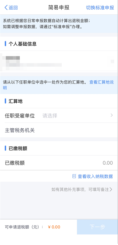划重点:如果你需要补税,但年度综合收入不足12万元,或汇算应补税额≤400元,可以点击【享受免申报】,不用补了!
