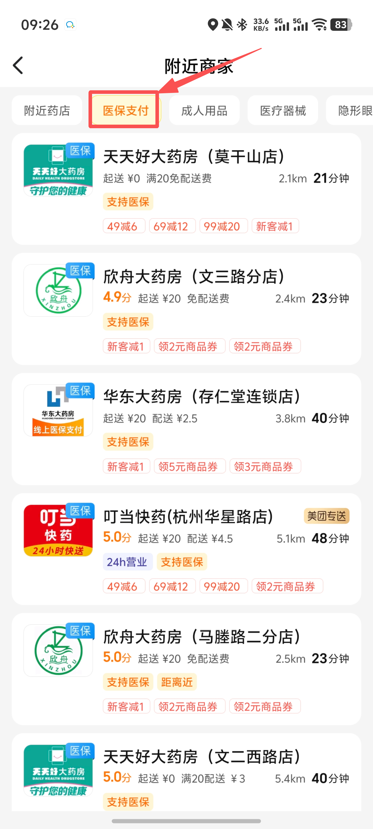 打开你常用的外卖软件,比如支付宝、美团买药等,搜索药品时,留心带有“支持医保”或“医保支付”小标志的药店。