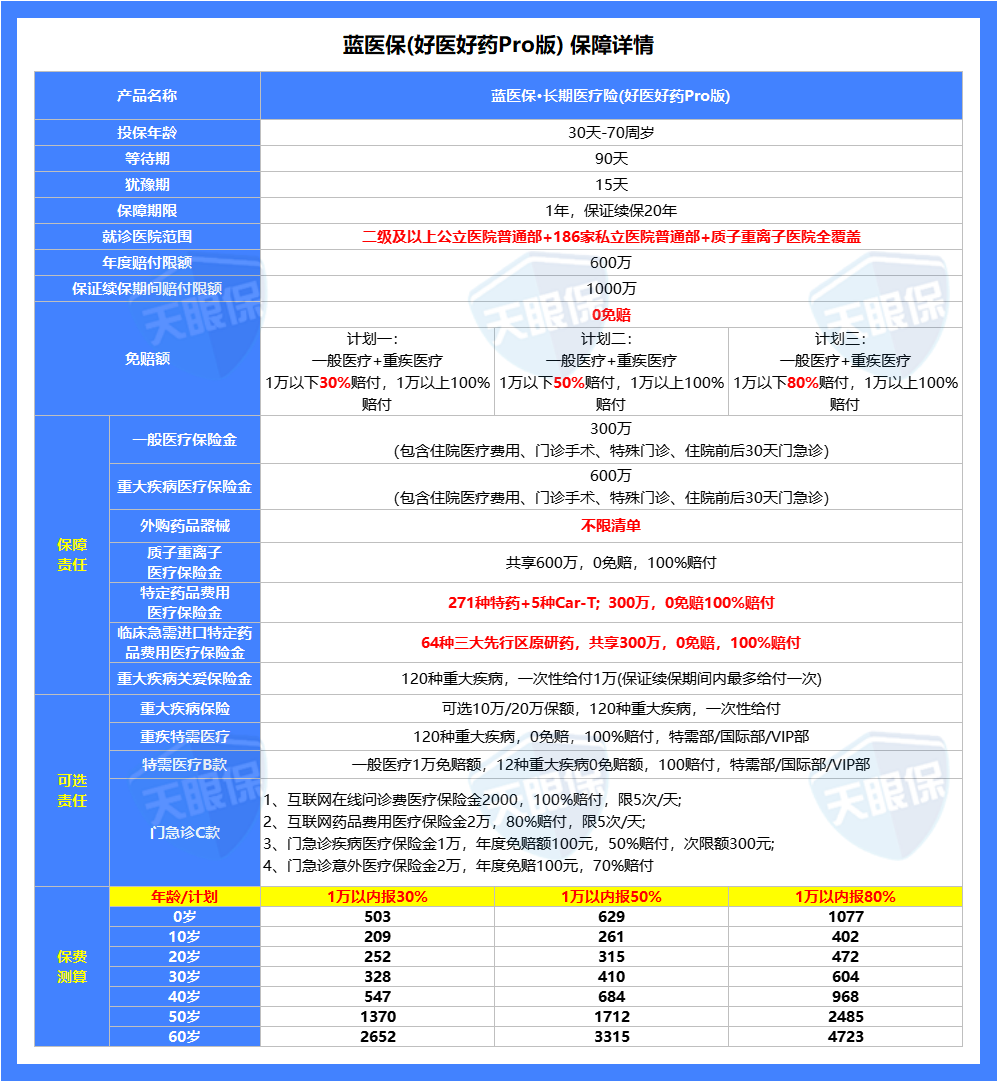 像上面提到的蓝医保好医好药版,如果是个人买的话,55岁以上投保,需要提供具体的体检报告,投保难度大大增加;