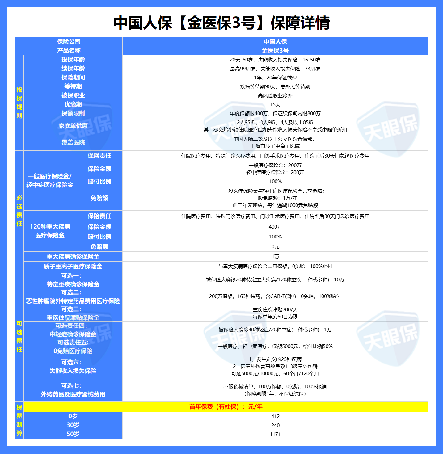 如果家里有 55-60 岁的长辈,想买大公司的、保证续保20年的百万医疗险,那可以重点看看金医保 3 号: