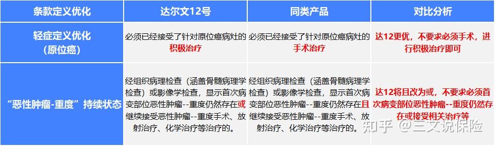 - 原位癌:别家都要求必须做手术才赔,达尔文12号只要求“进行积极治疗”即可。化疗、放疗都算,覆盖面更广,理赔更轻松。