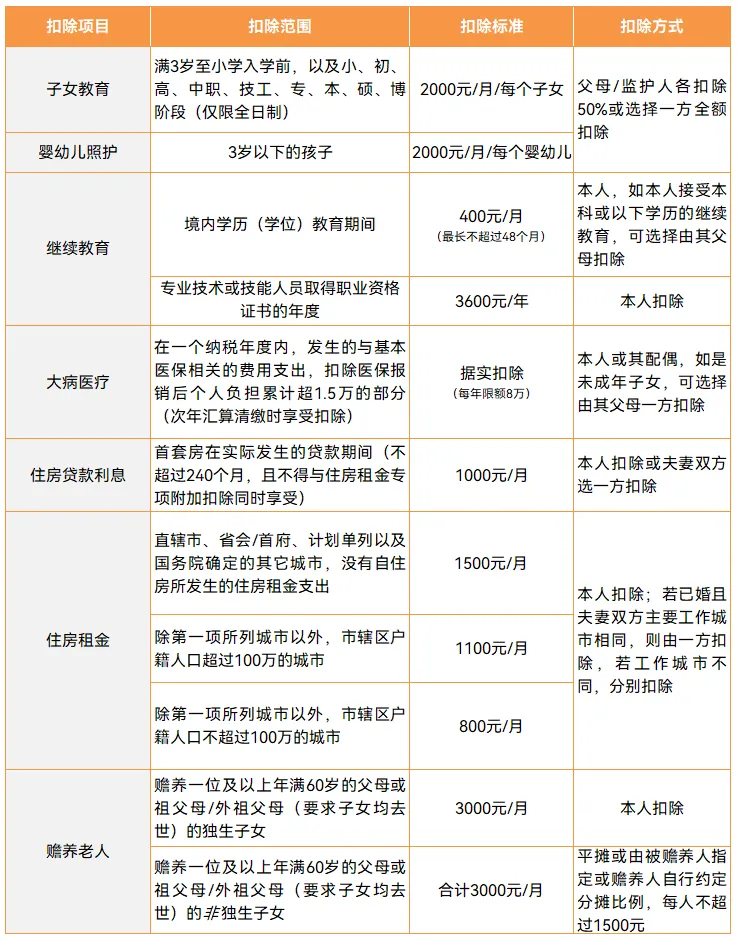 详细的扣除范围等,我都汇总在表格上了,更方便大家直接了解及保存,这里就不过多介绍了;