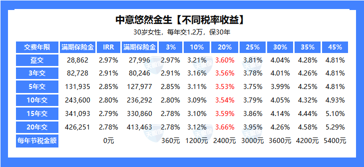 以30岁女性,交10年为例。如果你不退税,它本身的收益就已经很稳健了;