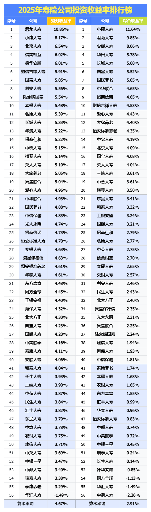 君龙人寿的财务收益率竟然冲到了 10.85%,小康人寿 的高达 11.64%。