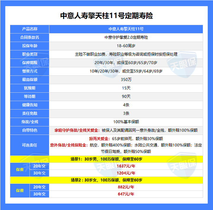 此外,达尔文12号的可选责任中,有一个“顶梁柱关爱金”,实用性超强。