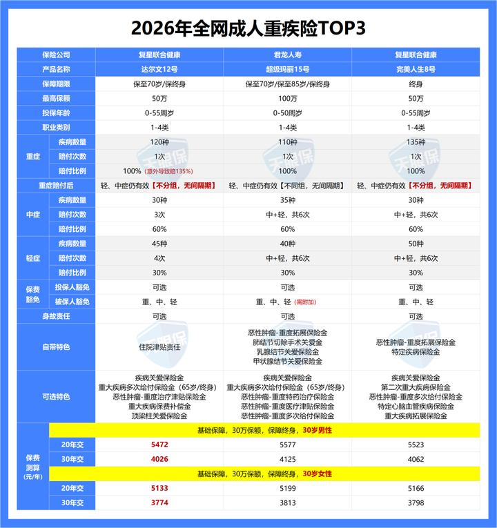 总的来说,上述3款产品,无论是哪一款,都是全网成人重疾险中,妥妥的综合性价比TOP3的产品,闭眼入也是不踩坑的!