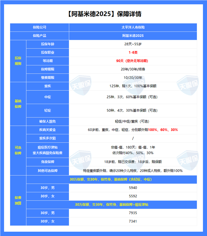 而且保障全面,价格低,可以毫不夸张地说,想买大公司重疾险,太平洋阿基米德2025就是目前的最优选了。