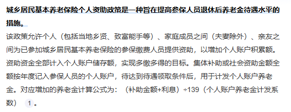有的地区政策允许子女或其他亲属以"个人资助"的名义,给父母额外增加缴费。
