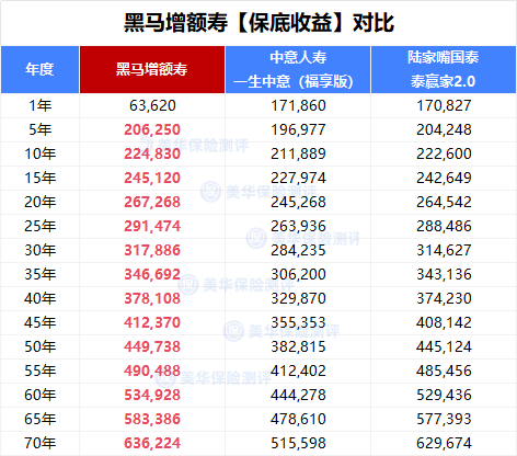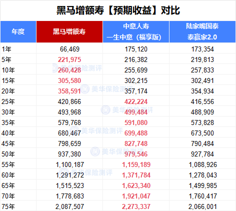 那也就说明,如果你的这笔钱想投个20年左右,还是黑马增额寿更适合,保底收益高,前20年的预期收益也更高。