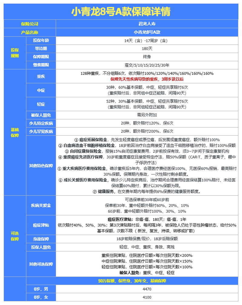 作为少儿重疾险里的明星产品,小青龙8号也卡着这个节点上线了。