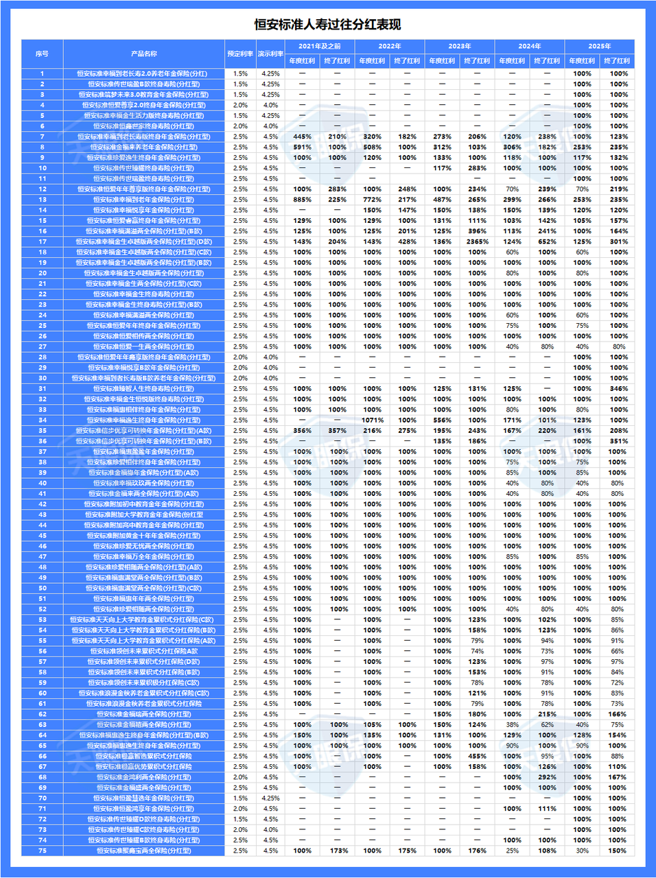 根据公开的数据调研,恒安标准过往的分红产品表现极其稳健: