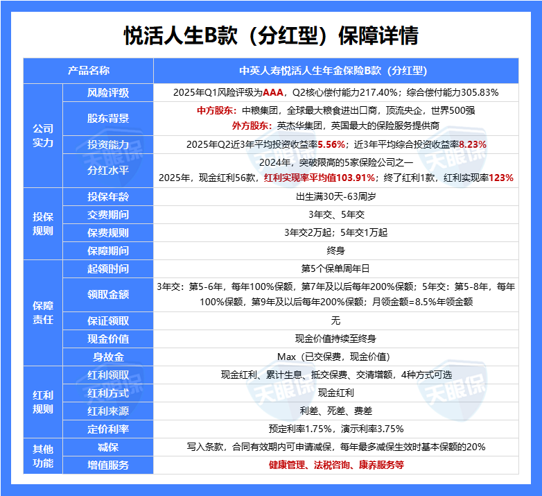 极度看重保司的硬实力、大品牌,以及历史分红兑现的绝对确定性,选中英人寿悦活人生B款。