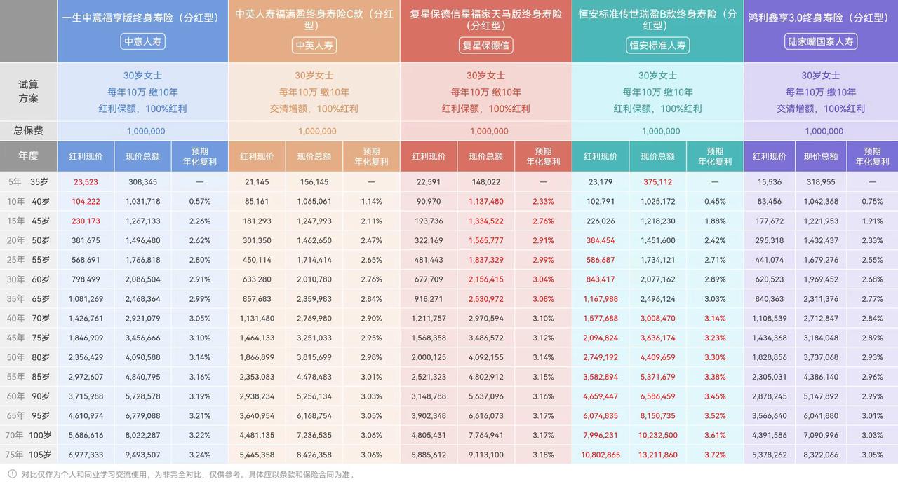 所以,这 5 家保司,实力确实都是佼佼者,但是具体哪款适合你,还是要具体情况具体分析。同样的保单,30岁买和35岁买,3年交和10年交,收益排名完全不一样!