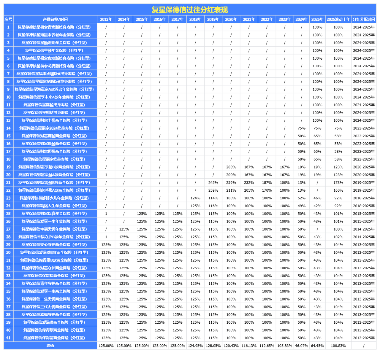 但把目光聚焦到星福家、星海赢家等13款2024-2025年最新主力产品上,你会发现它们的2025年分红实现率全线达到了100%。