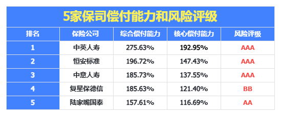 中意、中英、恒安标准、复星保德信、陆家嘴国泰的底牌。
