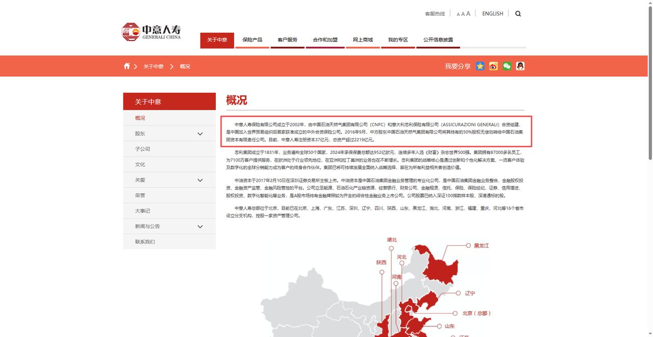 它是由中国石油天然气集团有限公司(CNPC)和意大利忠利保险有限公司(ASSICURAZIONI GENERALI)合资组建;