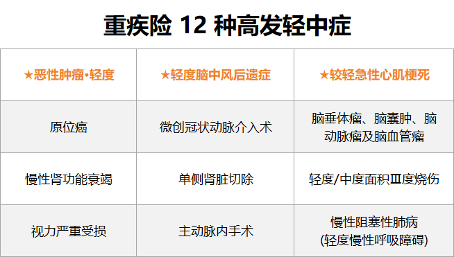 2、12种高发轻/中症: 这是保司喜欢暗藏猫腻的地方。