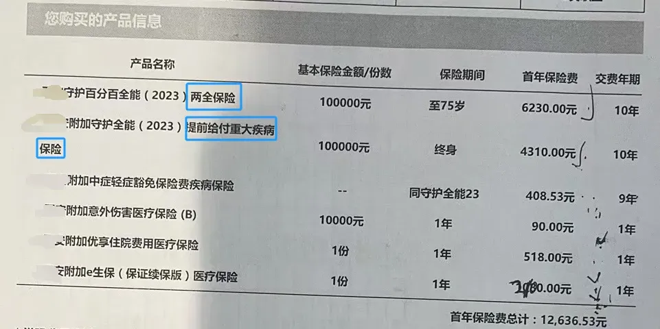 我一看他截图,好家伙,什么“第二次重疾”、“疾病关爱金”、“癌症津贴”,凡是能打勾的可选责任,他全给加上了
