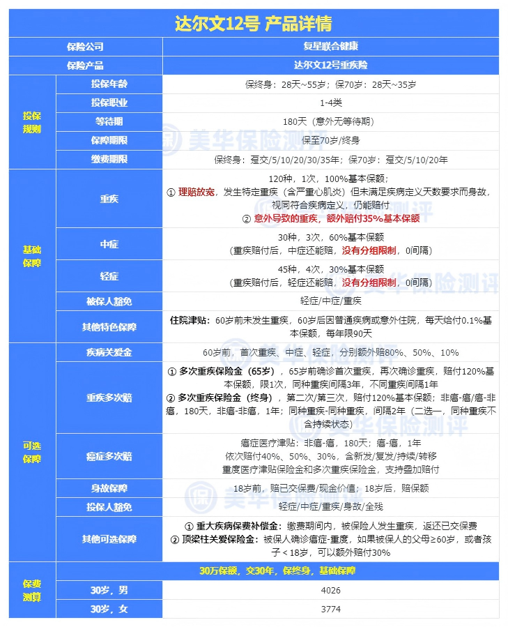 达尔文12号算不上完美产品,但它精准踩中了普通人买重疾险的核心需求,把「理赔宽松、责任实用、价格能打」这几点做到了极致。