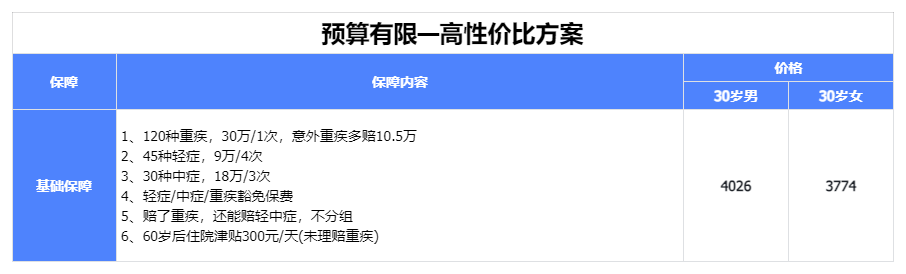 保额方面,30万是基础线,可以覆盖大部分重疾的基础治疗费用;