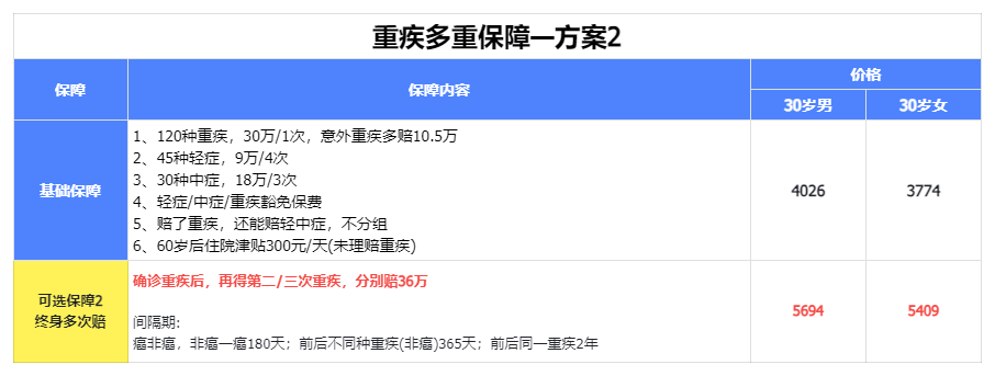 推荐直接一步到位选:30 万保额,30 年缴费,保终身 ——基础保障 + 终身重疾多次赔