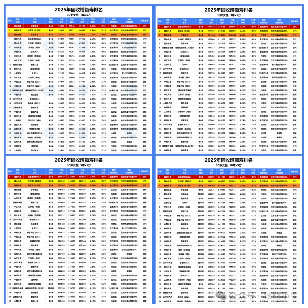 ①收益top1:各个交期的收益都非常优秀,在全网固收增额寿中,收益率NO.1的产品:
