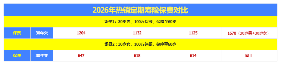 30岁的男性,每年只要花一千多块钱,就能买到100万的保额;女性甚至只要几百块。