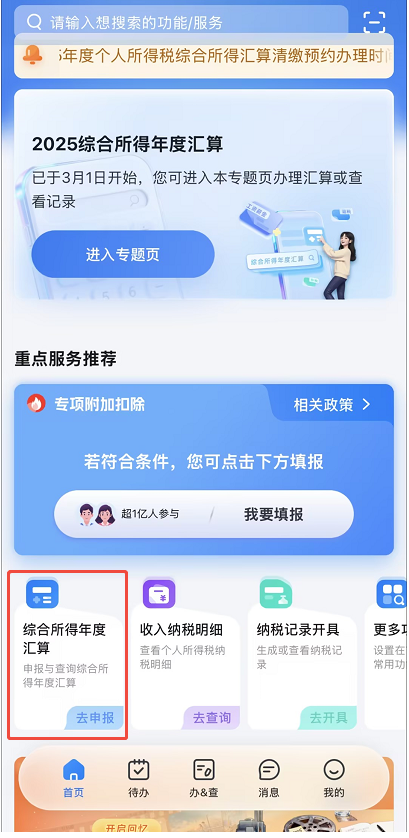 打开手机个税APP,直接进入年度汇算申报页面,别找错地方哈;