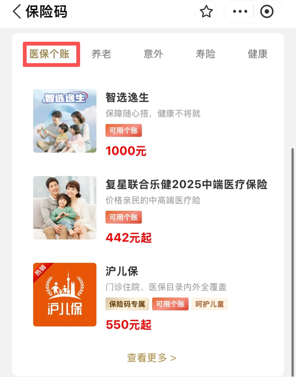 在很多城市的政务小程序里,比如上海“随申办”的“保险码”专区,可以直接用医保个账余额来支付百万医疗险、中高端医疗险,甚至是齿科和儿童门诊险。