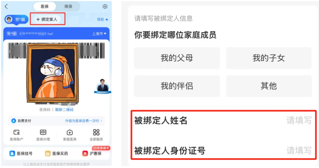 第二步:点击【绑定家人】,输入需要绑定的家人身份信息
