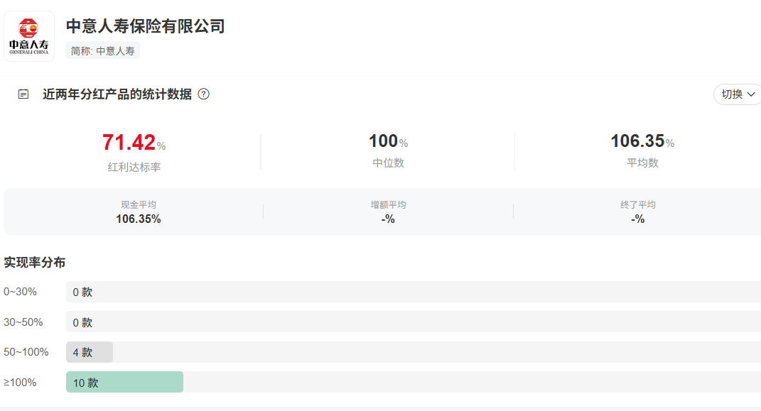 我特意去查了这款产品的保司分红数据,中意人寿近5年分红产品平均实现率83%,其中13款产品实现率100%以上,投资能力稳定,不是画大饼。
