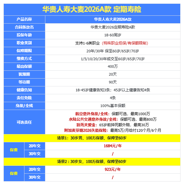 1、华贵大麦2026A款定期寿险