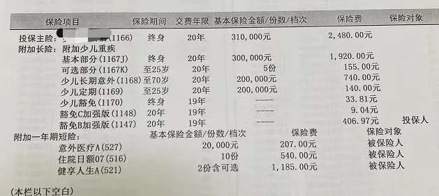 而且还有一些险种你根本用不上,相当于白花钱,就比如说少儿定期,指的是25岁前孩子要身故了。